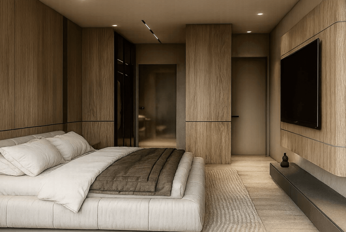 Includes bedroom furniture, living room furniture, dining set, lighting, décor, and balcony furniture (as per plan).